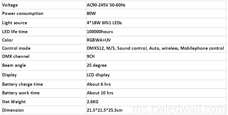 4pcs*18W LED PAR 6IN1 RGBWA UV UV Bateri